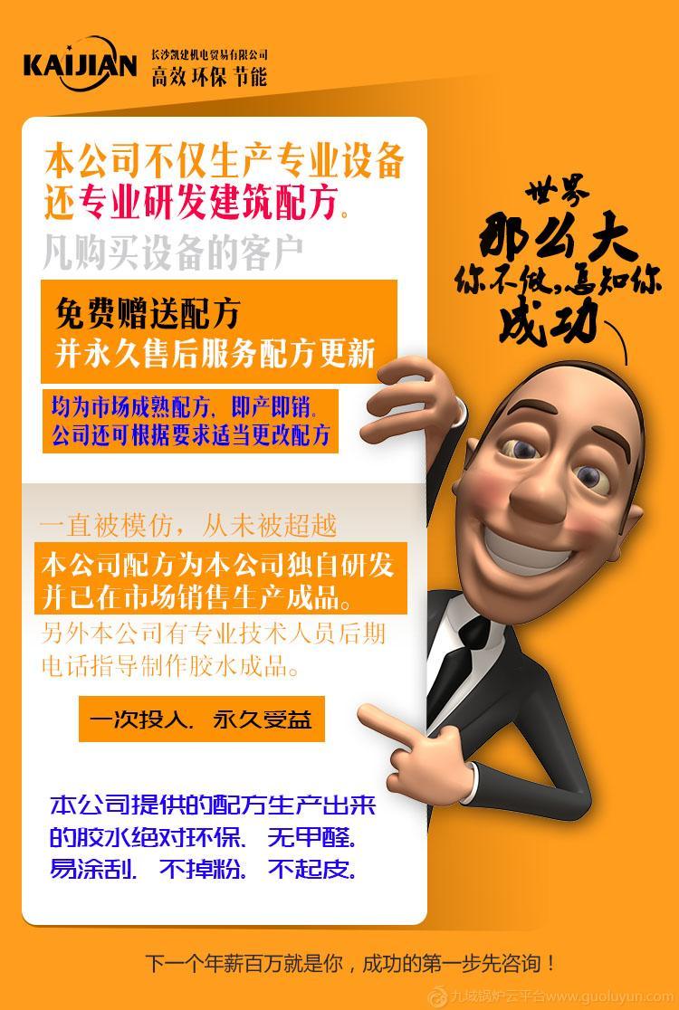 KAIJIAN型建筑膠水反應釜主要應用于生產108/801/901/606/107膩子膠水等產品。它控溫準,操作方便,混合效果好,節能環保高效。生產出的膠水強度好、保水性、施工性;久放不分層、儲存時間長,適應各種粉料(包括:石膏粉、雙飛粉、滑石粉、黑水泥、裝飾白水泥324-425白水泥等等)調配,手感輕松,二遍三遍披刮不起毛、不拉皮、不脫粉,固含量1.8%左右。